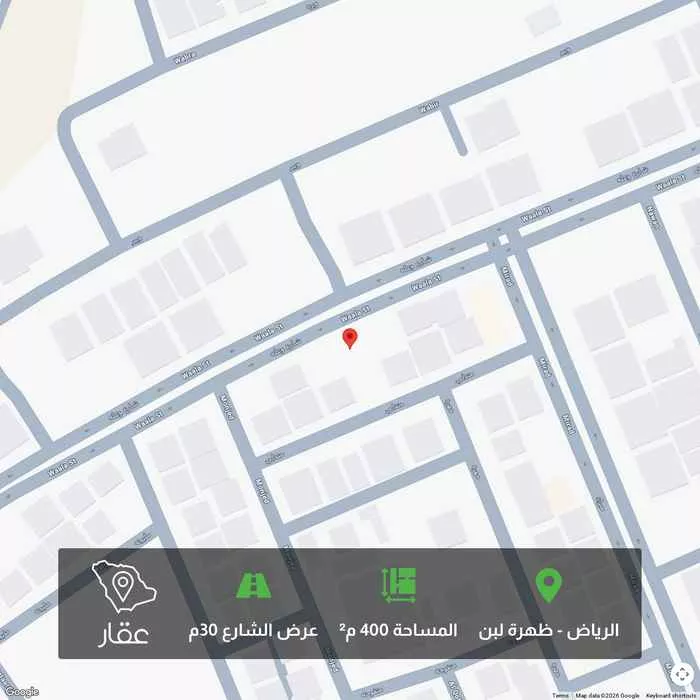 400 م² أرض في ظهرة لبن، الرياض معروضة بسعر ٢٬٤٠٠٬٠٠٠ ريال، أقل بنسبة 3% من متوسط سعر الحي البالغ ٢٬٤٧٥٬٠٠٠ ريال. بناءً على 264 عقار مشابه.