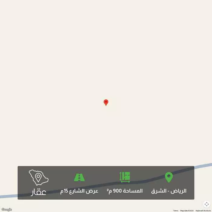900 م² أرض في الشرق، الرياض معروضة بسعر ٢٩٧٬٠٠٠ ريال، أقل بنسبة 50% من متوسط سعر الحي البالغ ٥٩٨٬٩٥٠ ريال. بناءً على 650 عقار مشابه.