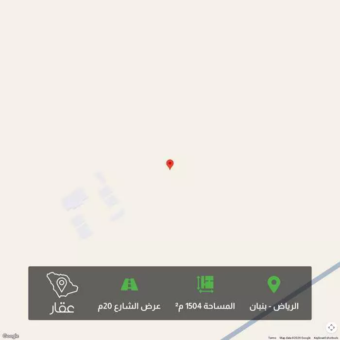 1504 م² أرض في بنبان، الرياض معروضة بسعر ٢٬٢٥٦٬٧٦٥ ريال، أعلى بنسبة 180% من متوسط سعر الحي البالغ ٨٠٤٬٥٦٢٫٥ ريال. بناءً على 944 عقار مشابه.