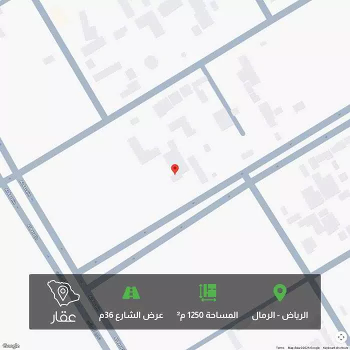 عرض على Aqarارض تجاريه للبيع حي الرمال المساحه 1250 متر الشارع عرض 36 متر الواجهه جنوبي ترخيص 4 ادوار مؤجره بعقد سنوي بمبلغ 150 الف للاستفسار 0567772202 0559559553
