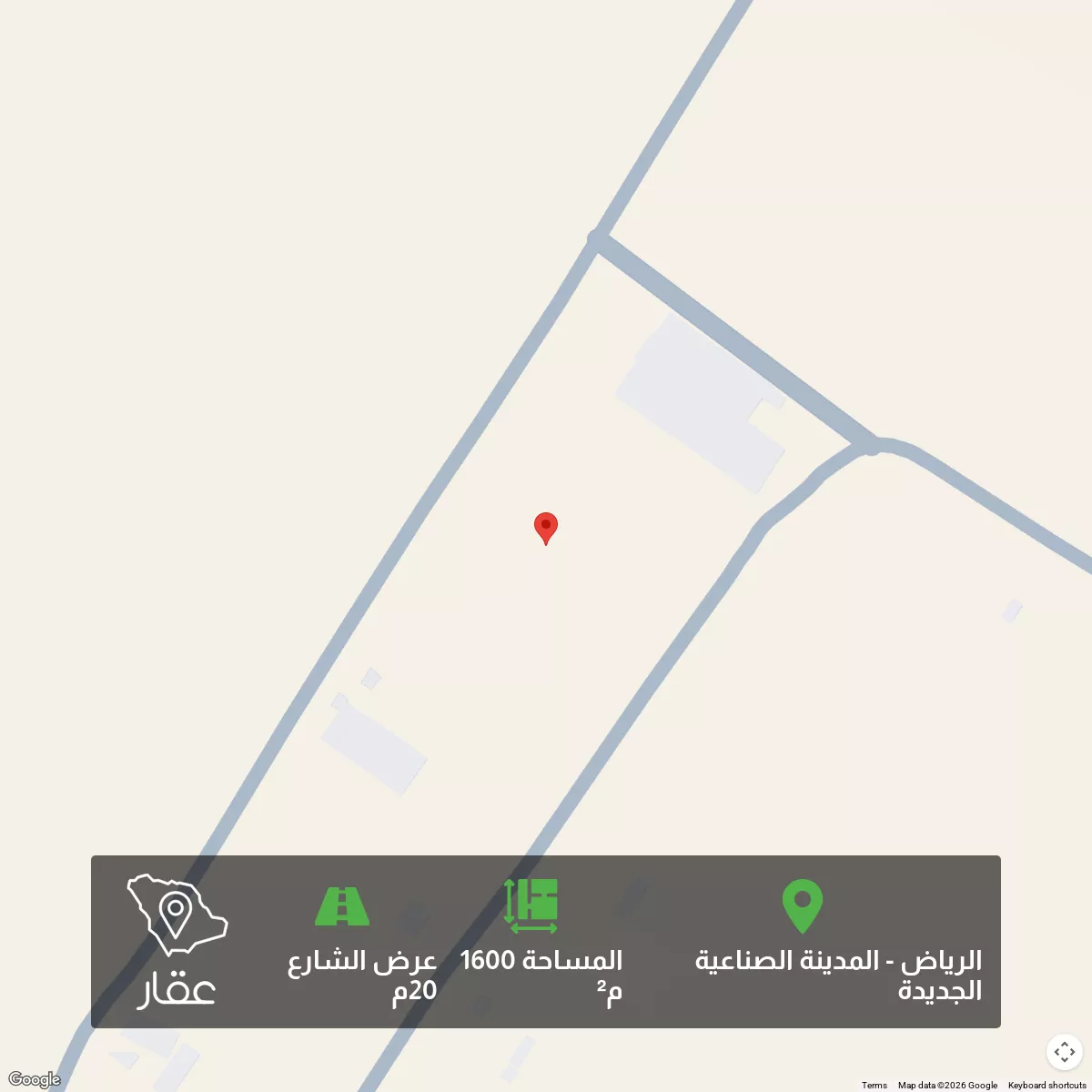ارض صناعية للبيع المصفاة مخطط 2377 المساحة 1600م 40*40 على شارع 20 مسورة في أول المخطط عليها رخصة جازة لـ 4 منشآت .