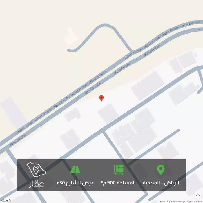 900 م² أرض في المهدية، الرياض معروضة بسعر ٤٬٥٠٠٬٠٠٠ ريال، أعلى بنسبة 145% من متوسط سعر الحي البالغ ١٬٨٣٩٬٨٤٠ ريال. بناءً على 364 عقار مشابه.