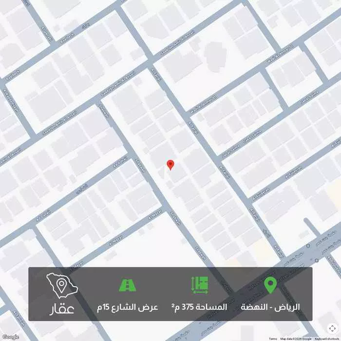 375 م² أرض في النهضة، الرياض معروضة بسعر ١٬٥٧٥٬٠٠٠ ريال، أقل بنسبة 25% من متوسط سعر الحي البالغ ٢٬١٠٣٬٠٠٠ ريال. بناءً على 42 عقار مشابه.