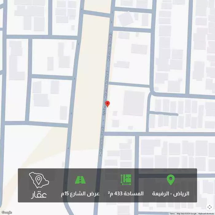 عرض على Aqarارض مساحة 433.19م شارع عرض 15م طولها على الشارع 13.67م في عمق 31.49م الحد 3 مليون السعر قابل التفاوض مع المالك (في عروض اخرى في نفس الحي بمساحات مختلفه وايضا في احياء مجاوره) (اذا في عندك اي عقار ولك ...