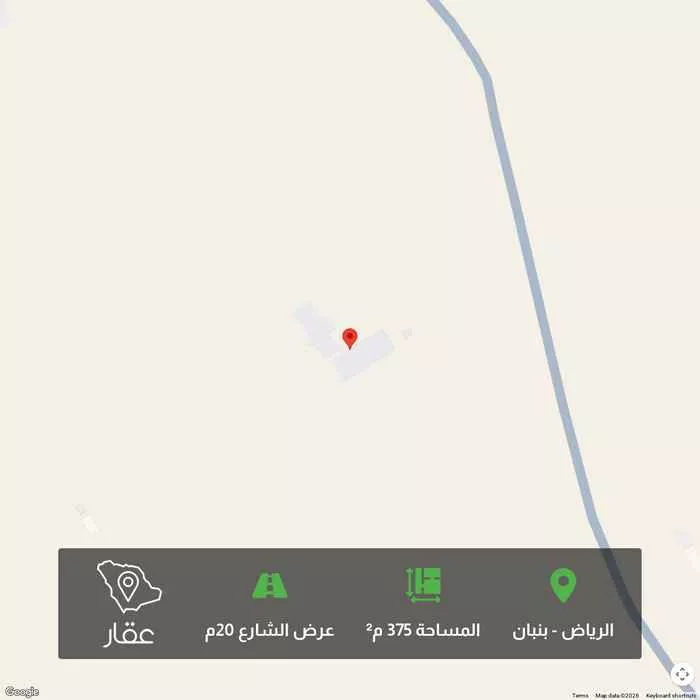 375 م² أرض في بنبان، الرياض معروضة بسعر ١٬١٢٥٬٠٠٠ ريال، أعلى بنسبة 40% من متوسط سعر الحي البالغ ٨٠٤٬٥٦٢٫٥ ريال. بناءً على 944 عقار مشابه.