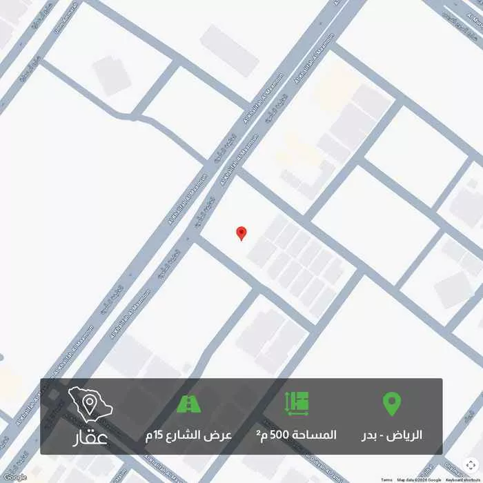 500 م² أرض في بدر، الرياض معروضة بسعر ٩٠٠٬٠٠٠ ريال، أقل بنسبة 36% من متوسط سعر الحي البالغ ١٬٤٠٠٬٨٦٥ ريال. بناءً على 88 عقار مشابه.