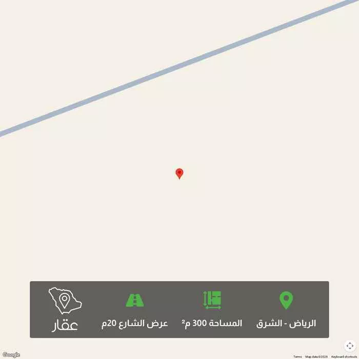 300 م² أرض في الشرق، الرياض معروضة بسعر ٦٣٠٬٠٠٠ ريال، أعلى بنسبة 5% من متوسط سعر الحي البالغ ٥٩٨٬٩٥٠ ريال. بناءً على 650 عقار مشابه.