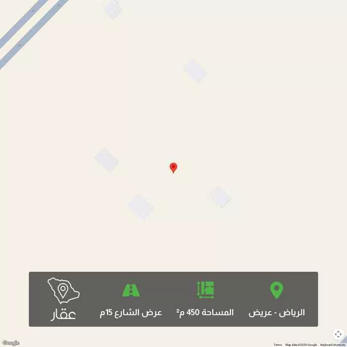 450 م² أرض في عريض، الرياض معروضة بسعر ٥٤٠٬٠٠٠ ريال، أعلى بنسبة 35% من متوسط سعر الحي البالغ ٣٩٩٬٦٠٠ ريال. بناءً على 653 عقار مشابه.