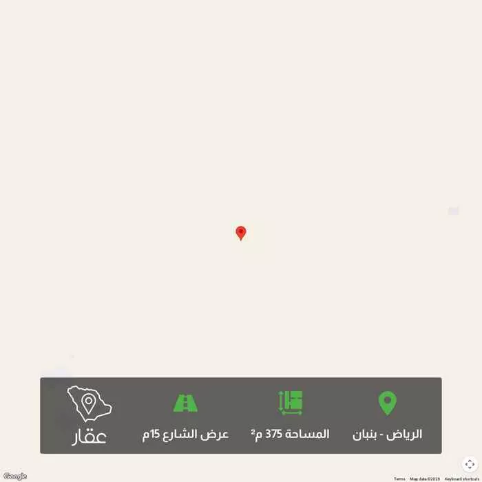375 م² أرض في بنبان، الرياض معروضة بسعر ٨٠٠٬٦٢٥ ريال، بنفس متوسط سعر الحي البالغ ٨٠٤٬٥٦٢٫٥ ريال. بناءً على 944 عقار مشابه.