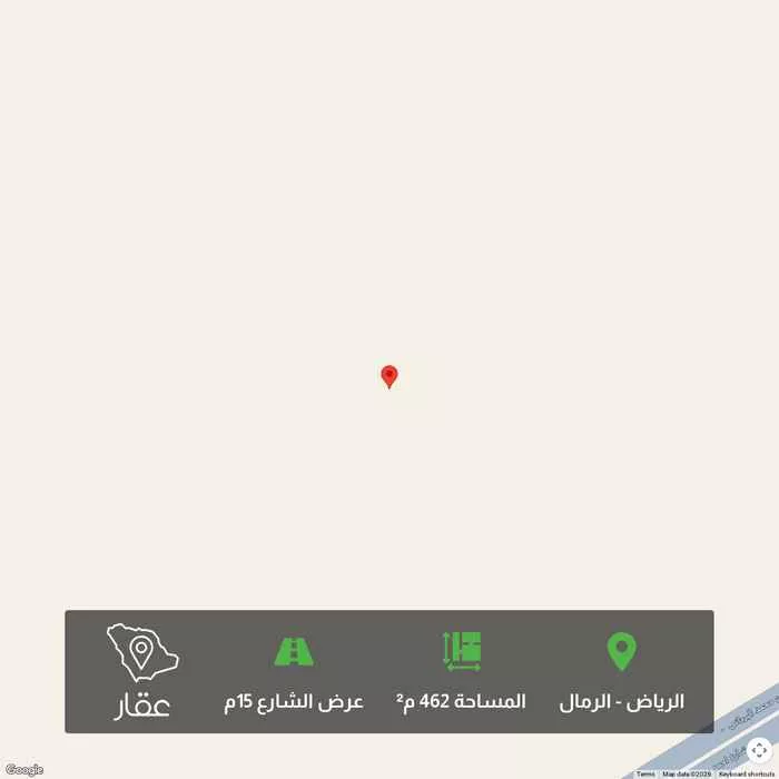 عرض على Aqarارض مساحتها ٤٦١،٣ متر مربع رقم القطعه ٥١٦ في حي الرمال. شارع ١٥ جنوبي طولها على الشارع ١٨ متر ونص وعمقها ٢٥ متر . يوجد ارض ملاصقه لها رقمها ٥١٨ للبيع كذلك