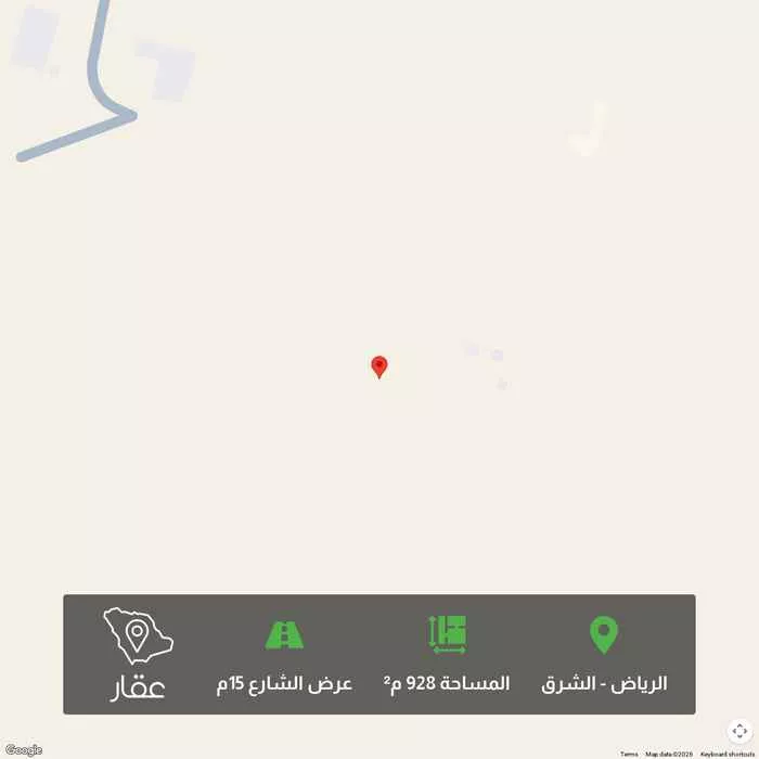 928 م² أرض في الشرق، الرياض معروضة بسعر ٥١٠٬٤٠٠ ريال، أقل بنسبة 15% من متوسط سعر الحي البالغ ٥٩٨٬٩٥٠ ريال. بناءً على 650 عقار مشابه.