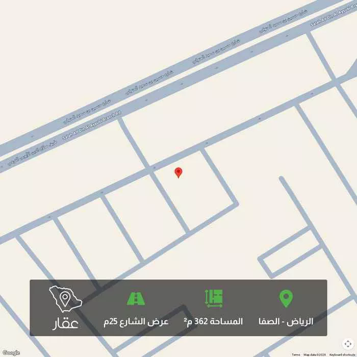 362 م² أرض في الصفا، الرياض معروضة بسعر ١٬٩٢٣٬٢١١ ريال، أعلى بنسبة 3% من متوسط سعر الحي البالغ ١٬٨٧٥٬٠٠٠ ريال. بناءً على 37 عقار مشابه.