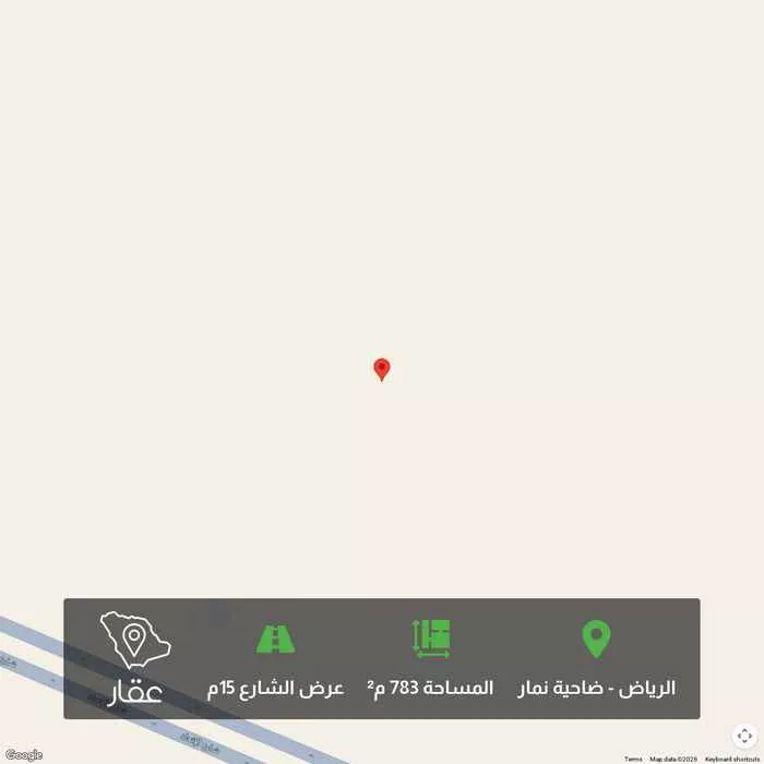 عرض على Aqarارض سكنية للبيع - الرياض - نمار 3020 - مخطط 1 البيع من المالك مباشرة المساحة : 783م² رقم القطعة : 1113/1 الواجهة : شرقية الشارع : 15 شرقي الأطوال : 17.4م × 45م طبيعة الارض ممتازة ( مستوية ) قريبة جدا ...