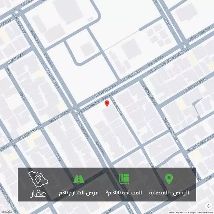 عرض على Aqarارض تجاريه مرتفعه المساحة : 300 متر على شارعين 30 شمالي 12 شرقي في حي الفيصليه مع العلم ان المنطقه فيها تطوير وامتداد لمشاريع العمران وازالة مستودعات العويضه وورش السيارات