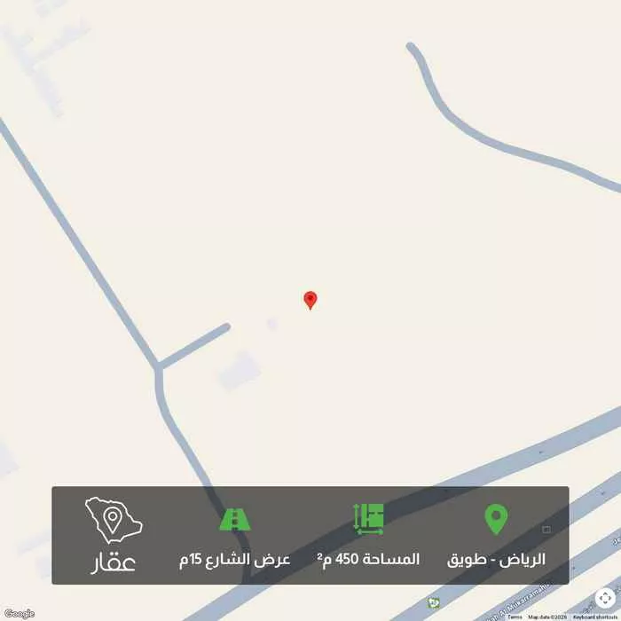 450 م² أرض في طويق، الرياض معروضة بسعر ١٬٢١٥٬٠٠٠ ريال، أقل بنسبة 10% من متوسط سعر الحي البالغ ١٬٣٥٧٬٥٠٠ ريال. بناءً على 14 عقار مشابه.