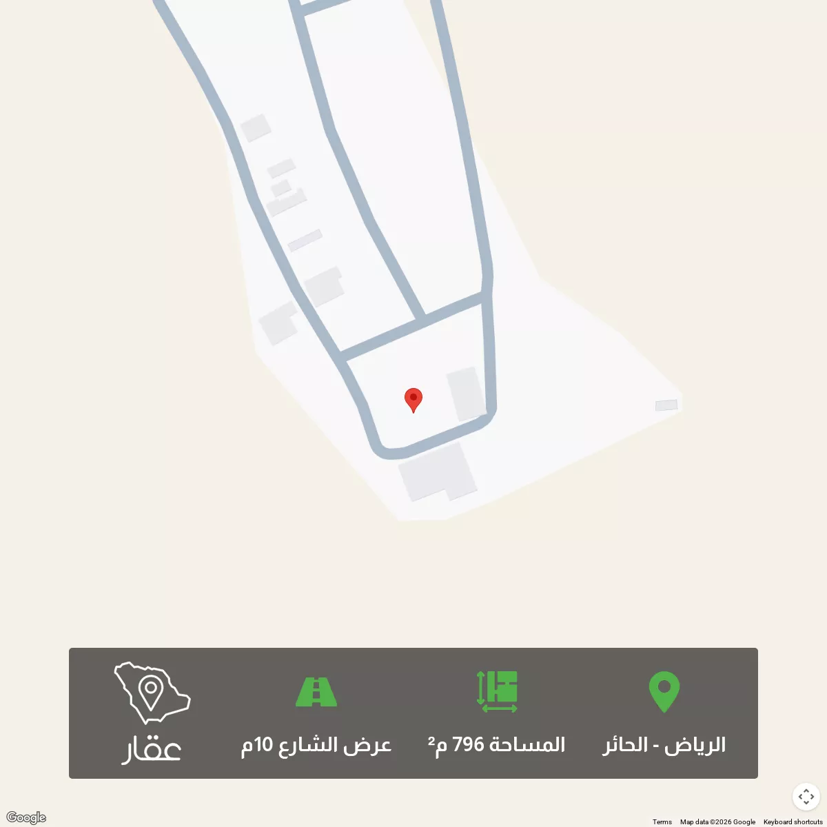 796 م² أرض في الحائر، الرياض معروضة بسعر ٥٥٧٬٣٤٠ ريال، أعلى بنسبة 43% من متوسط سعر الحي البالغ ٣٩٠٬٠٠٠ ريال. بناءً على 33 عقار مشابه.