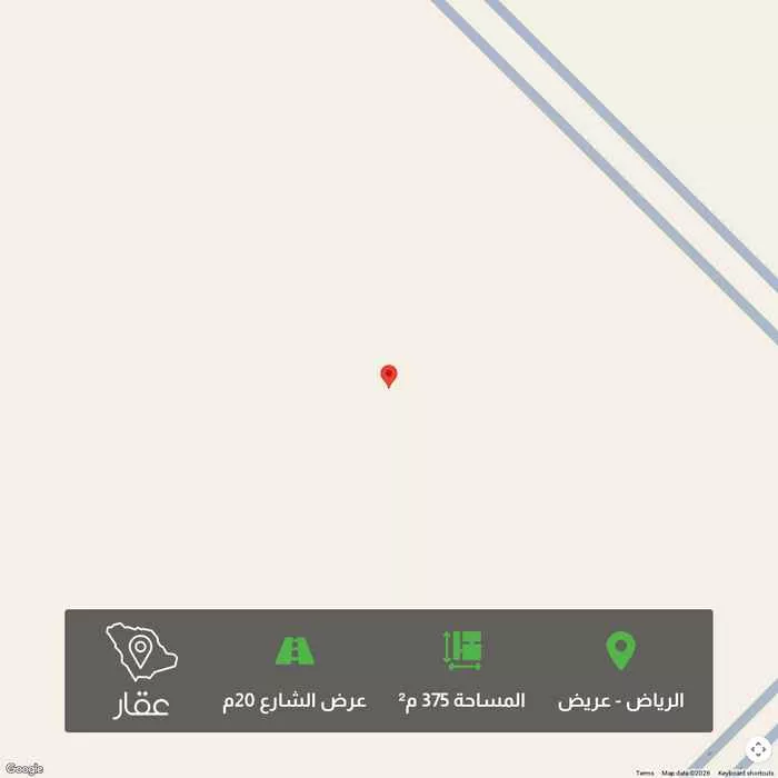 عرض على Aqarارض للبيع في حي عريض في مخطط 2744 مساحة الارض 375 شارع 20