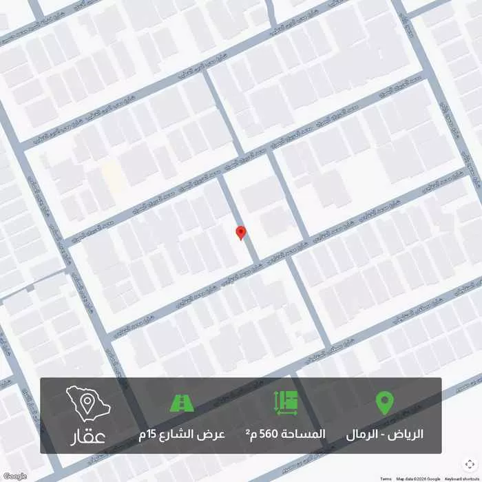 عرض على Aqarالسلام عليكم للبيع ارض مميزه حي الرمال مساحة ٥٦٠م شرقيه جنوبيه شارع ١٥م ممر يفتح علئ مسجد