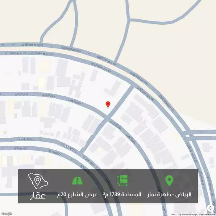1789 م² أرض في ظهرة نمار، الرياض معروضة بسعر ٥٬٩٠٣٬٧٠٠ ريال، أعلى بنسبة 126% من متوسط سعر الحي البالغ ٢٬٦١٧٬٨٠٠ ريال. بناءً على 30 عقار مشابه.
