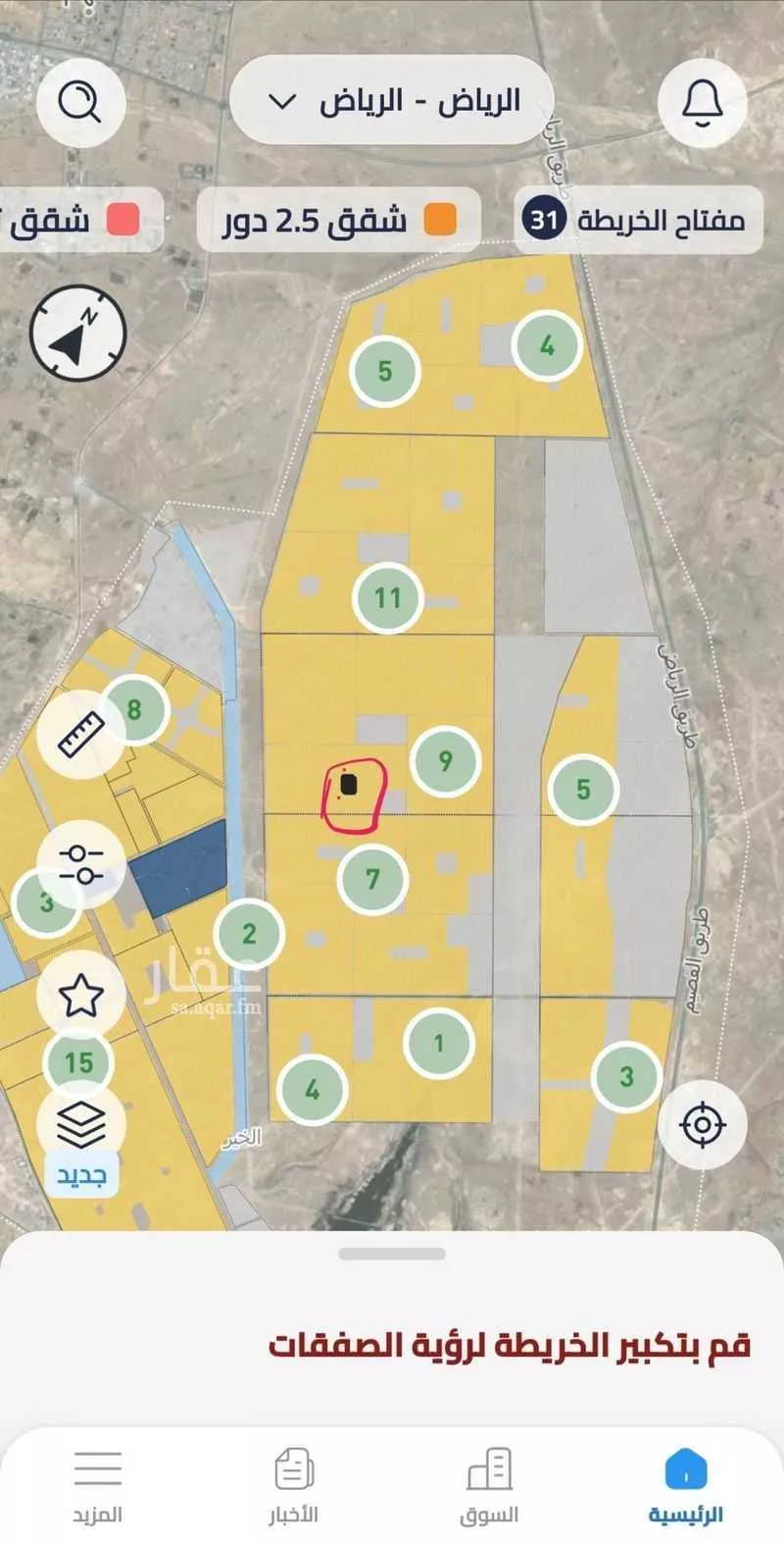 عرض على Aqarارض بحي الخير مخطط ٣٥٣٩ قطعة رقم ٤٦٨١ شارع عرض ٢٥ شمالية اطوالها 21 على الشارع في ٣٦ قريبة للطريق المؤدي لطريق القصيم طبيعة الارض ممتازه