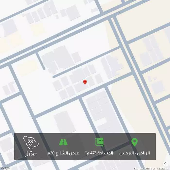عرض على Aqarارض في حي النرجس قريبه من طريق ابو بكر الصديق في موقع استراتيجي مساحة 475 شارع 20 وشمال طريق الملك سلمان