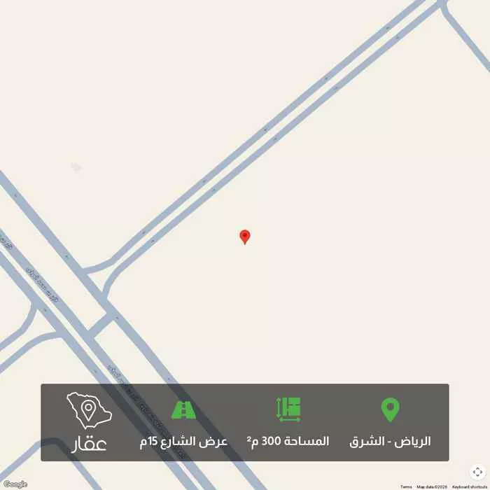300 م² أرض في الشرق، الرياض معروضة بسعر ٩٠٠٬٠٠٠ ريال، أعلى بنسبة 25% من متوسط سعر الحي البالغ ٧٢٠٬٠٠٠ ريال. بناءً على 37 عقار مشابه.