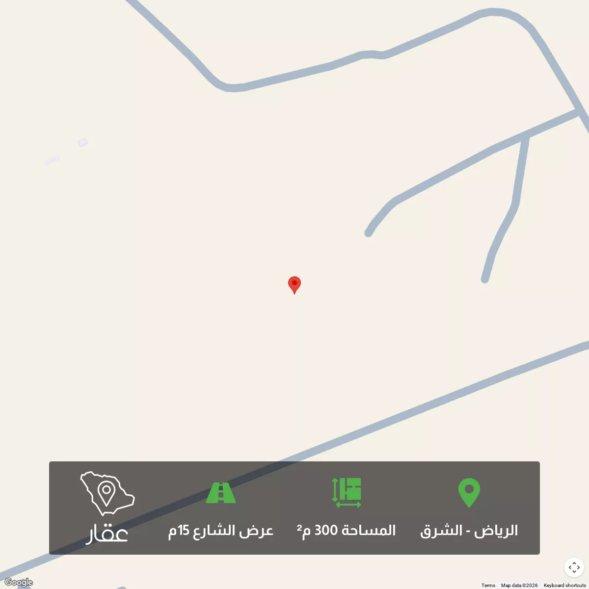300 م² أرض في الشرق، الرياض معروضة بسعر ٧٢٠٬٠٠٠ ريال، بنفس متوسط سعر الحي البالغ ٧٢٠٬٠٠٠ ريال. بناءً على 37 عقار مشابه.