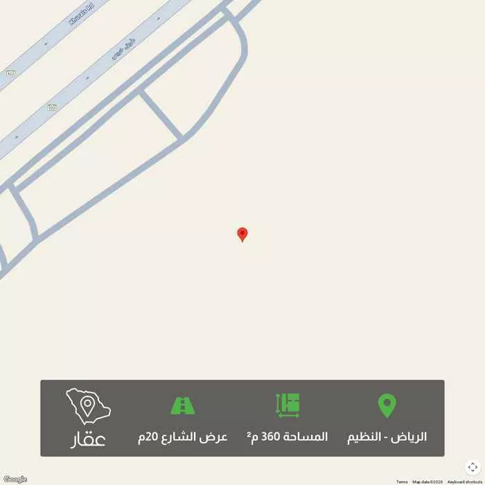 360 م² أرض في النظيم، الرياض معروضة بسعر ٦٣٠٬٠٠٠ ريال، أقل بنسبة 16% من متوسط سعر الحي البالغ ٧٥٣٬٠٠٠ ريال. بناءً على 228 عقار مشابه.