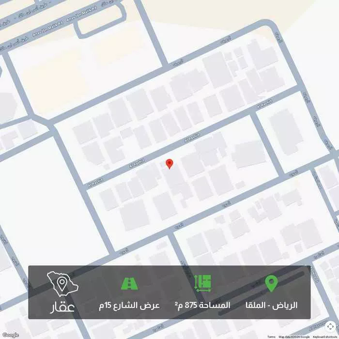 عرض على Aqarأرض للبيع مقام عليها فلة حي ملقا الحمدان مساحة 875م2 شارع 15 شمال (25* 35) موقع استراتيجي مميز للراغب في السكن أوالمطورين والمستثمرين تبعد 250م عن طريق الملك فهد وتبعد 195م عن طريق أنس بن مالك سهولة ا...