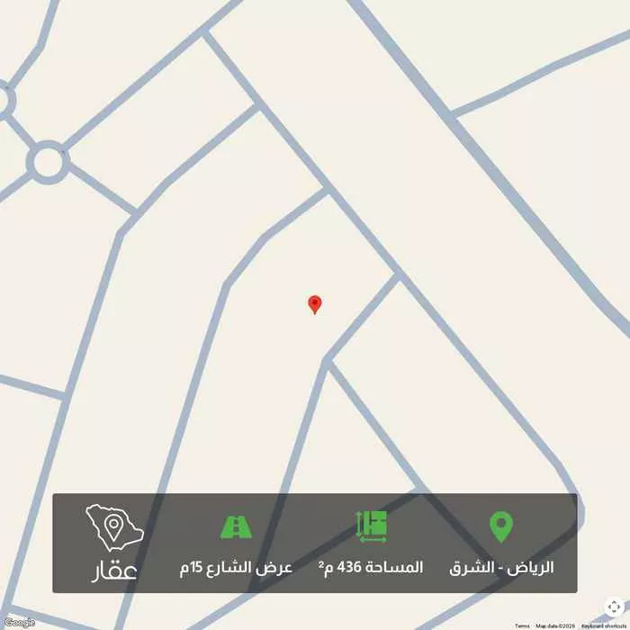 436 م² أرض في الشرق، الرياض معروضة بسعر ١٬١٣٣٬٦٠٠ ريال، أعلى بنسبة 57% من متوسط سعر الحي البالغ ٧٢٠٬٠٠٠ ريال. بناءً على 37 عقار مشابه.