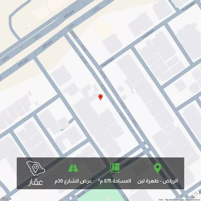 عرض على Aqarللبيــع ارض تجاريه حي ظهرة لبن المساحه 875م الأطوال 25م × 35م شارع 30م شرقي البيع 5000 المتر