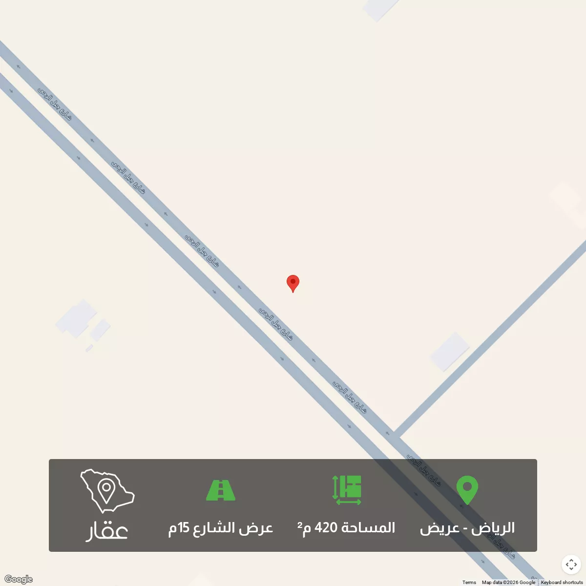 420 م² أرض في عريض، الرياض معروضة بسعر ٧٬١٥٢ ريال، أقل بنسبة 98% من متوسط سعر الحي البالغ ٣٩٩٬٦٠٠ ريال. بناءً على 653 عقار مشابه.