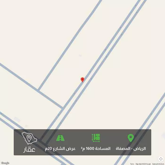 1600 م² أرض في المصفاة، الرياض معروضة بسعر ٣٠٬٠٠٠ ريال، أقل بنسبة 96% من متوسط سعر الحي البالغ ٨٥٠٬٠٠٠ ريال. بناءً على 76 عقار مشابه.