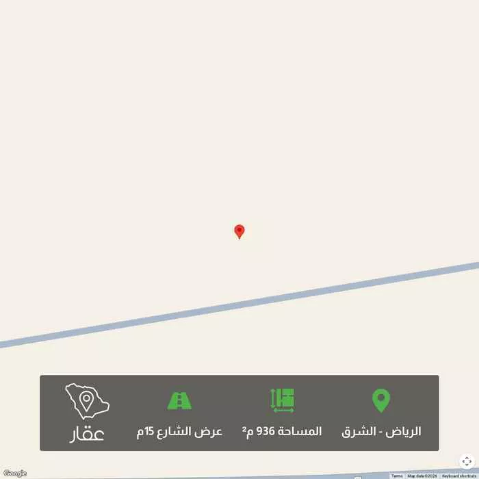 936 م² أرض في الشرق، الرياض معروضة بسعر ٦٤٠٬٠٠٠ ريال، أعلى بنسبة 7% من متوسط سعر الحي البالغ ٥٩٨٬٩٥٠ ريال. بناءً على 650 عقار مشابه.