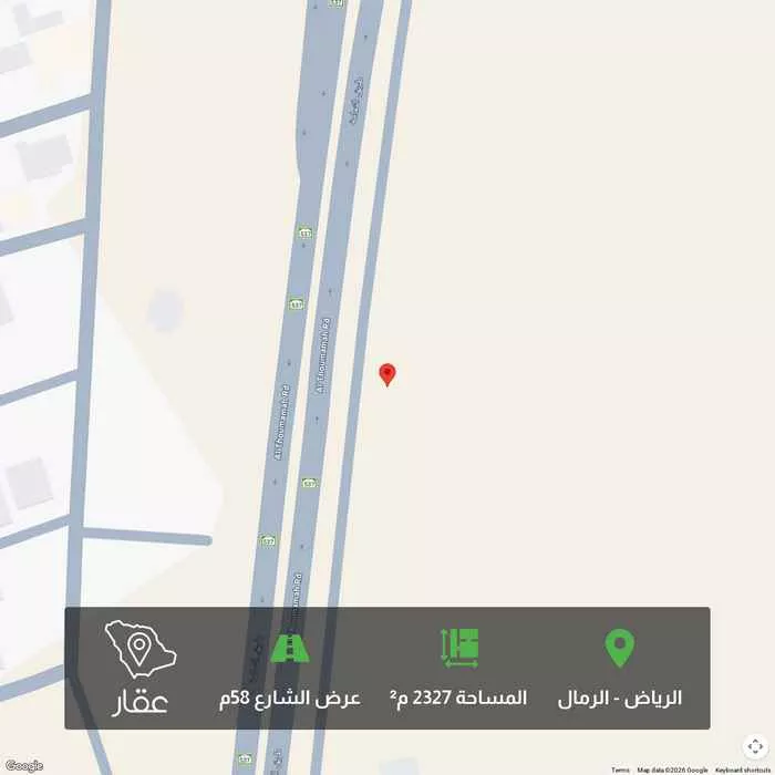 2327 م² أرض في الرمال، الرياض معروضة بسعر ٥٬٤٠٠ ريال، أقل بنسبة 100% من متوسط سعر الحي البالغ ٢٬٤٠٠٬٠٠٠ ريال. بناءً على 270 عقار مشابه.