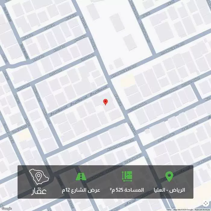525 م² أرض في العليا، الرياض معروضة بسعر ٧٠٬٠٠٠ ريال، أقل بنسبة 98% من متوسط سعر الحي البالغ ٣٬٤٧٩٬٦٨٧٫٥ ريال. بناءً على 42 عقار مشابه.