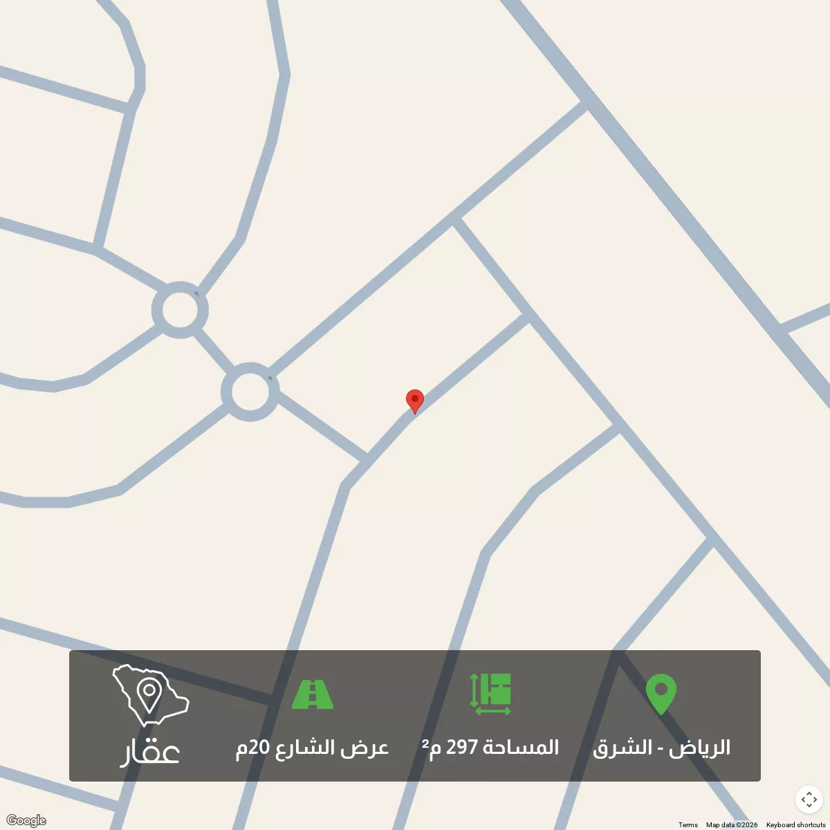 297 م² أرض في الشرق، الرياض معروضة بسعر ٣٦٬٠٠٠ ريال، أقل بنسبة 94% من متوسط سعر الحي البالغ ٥٩٨٬٩٥٠ ريال. بناءً على 650 عقار مشابه.