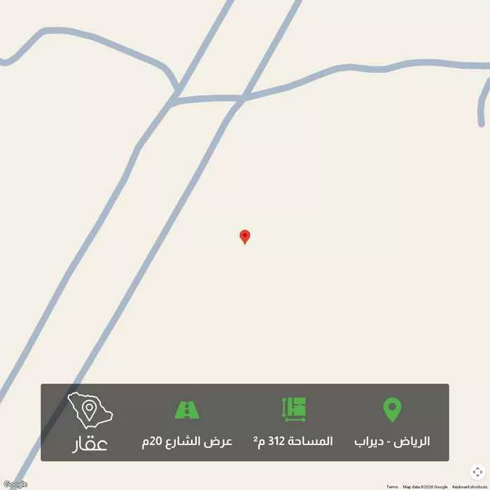 312 م² أرض في ديراب، الرياض معروضة بسعر ١٥٬٣٦٠ ريال، أقل بنسبة 98% من متوسط سعر الحي البالغ ٩٠٠٬٠٠٠ ريال. بناءً على 67 عقار مشابه.