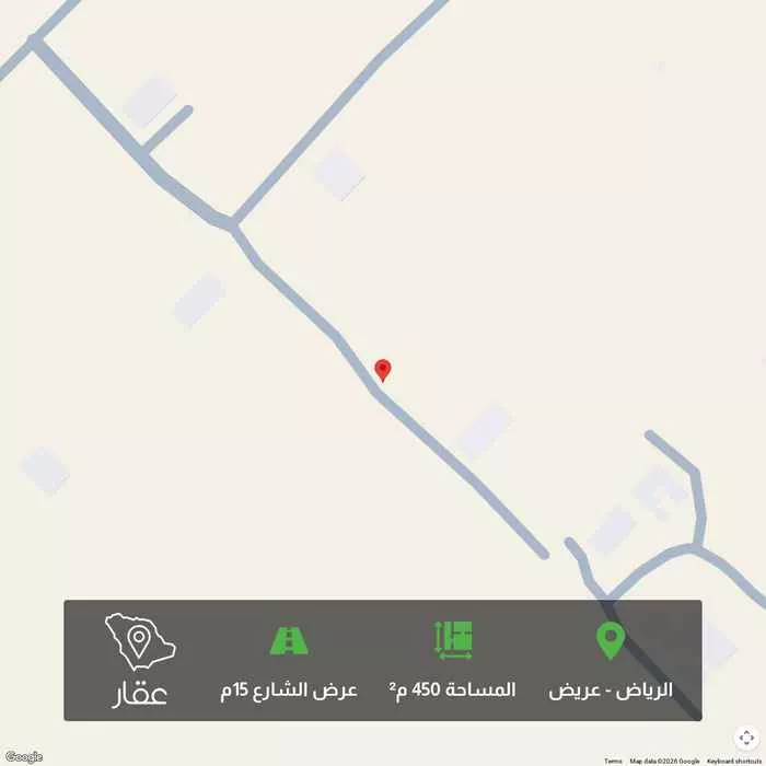 450 م² أرض في عريض، الرياض معروضة بسعر ١٣٬٣٣٢ ريال، أقل بنسبة 97% من متوسط سعر الحي البالغ ٣٩٩٬٦٠٠ ريال. بناءً على 653 عقار مشابه.