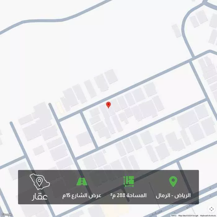 288 م² أرض في الرمال، الرياض معروضة بسعر ٥٥٬٢٠٠ ريال، أقل بنسبة 98% من متوسط سعر الحي البالغ ٢٬٤٠٠٬٠٠٠ ريال. بناءً على 270 عقار مشابه.