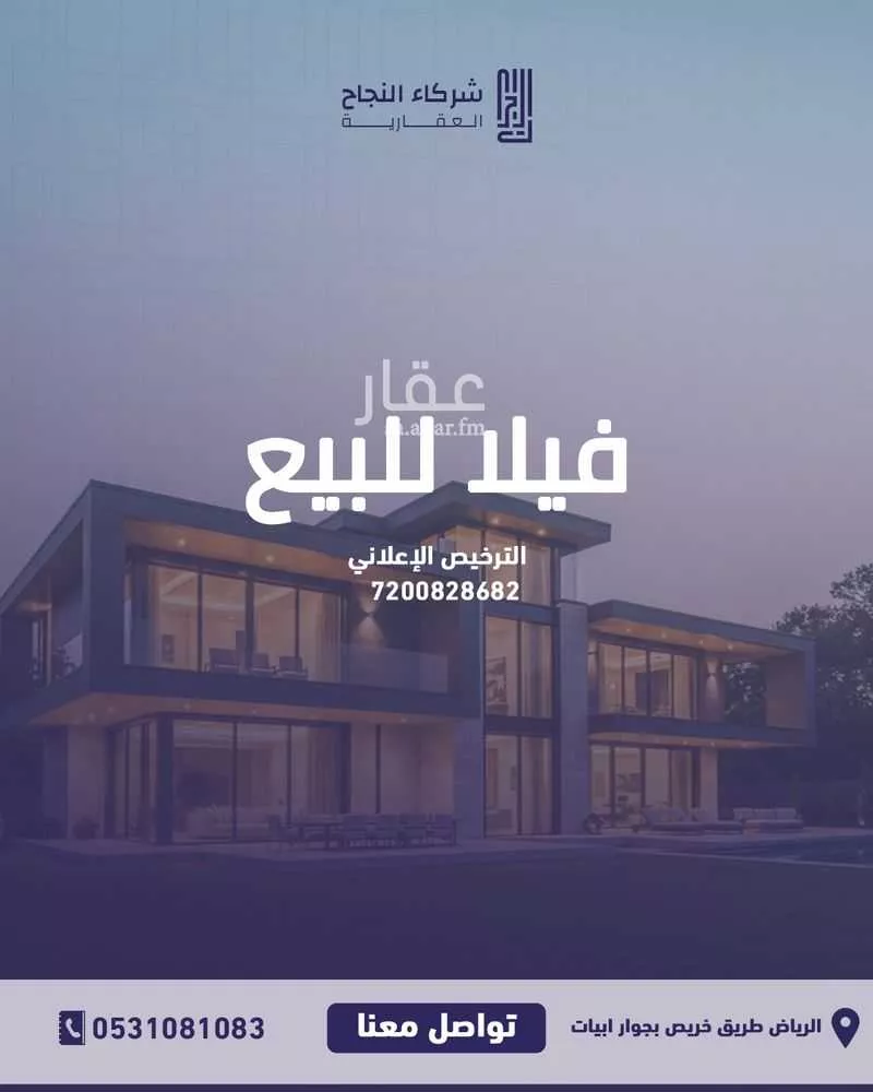 عرض على Aqarللبيع فلة سكنية مميزة – شمال الرياض (حي العارض) فلة بتصميم عملي ومثالي للعائلة، تتميز بالخصوصية العالية والموقع الاستراتيجي في حي هادئ وقريب من الطرق الرئيسية والخدمات. تفاصيل العقار: • المساحة: 333 م...