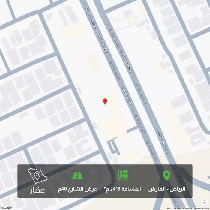 عرض على Aqarارض تجارية مميزة للبيع على طريق أبو بكر الصديق في حي العارض المساحة 2400 الأطوال 60x40 شارع 60 شرقي شارع 20 غربي الموقع https://maps.app.goo.gl/vuBEAhWVydzToUrP8?g_st=ic