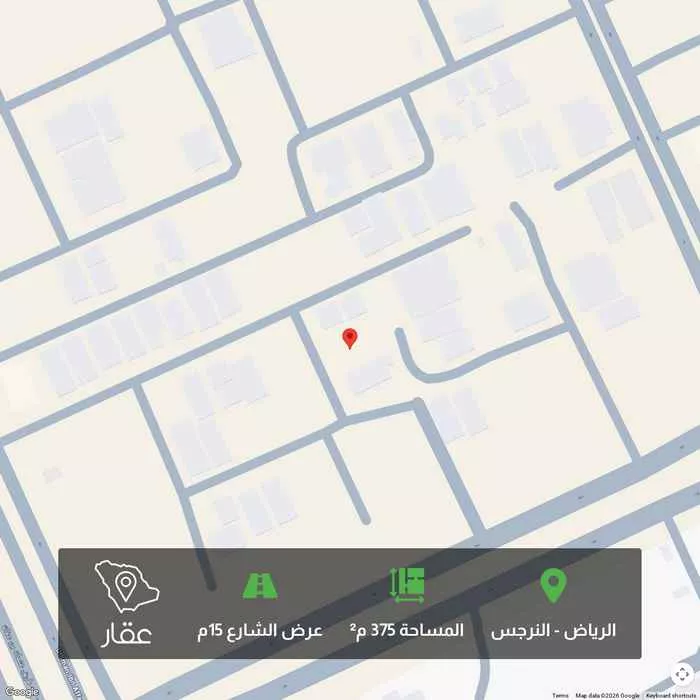 375 م² أرض في النرجس، الرياض معروضة بسعر ٣٬٠٠٠٬٠٠٠ ريال، أعلى بنسبة 3% من متوسط سعر الحي البالغ ٢٬٩٢٥٬٠٠٠ ريال. بناءً على 396 عقار مشابه.