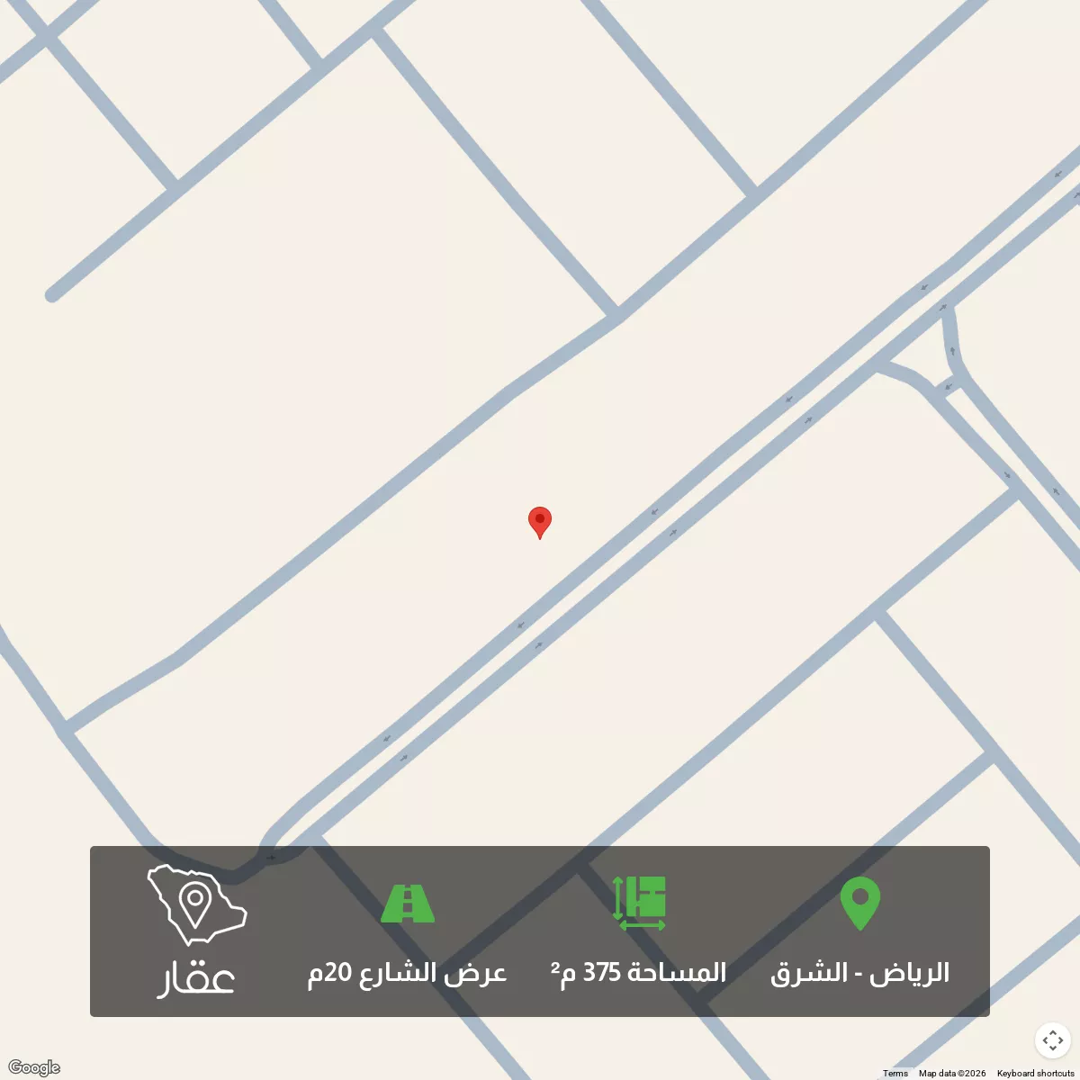 375 م² أرض في الشرق، الرياض معروضة بسعر ٧٨٧٬٥٠٠ ريال، أعلى بنسبة 31% من متوسط سعر الحي البالغ ٥٩٨٬٩٥٠ ريال. بناءً على 648 عقار مشابه.