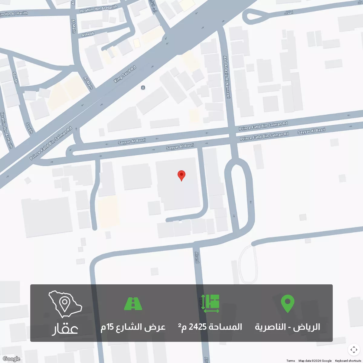 عرض على Aqarأرض للبيع بمساحة 2425 متر مربع 3 شوارع بحي الناصرية
