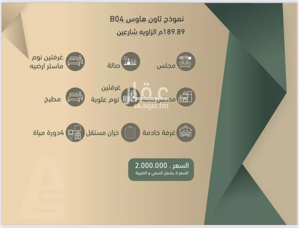 عرض على Aqarمشروع فلل تاون هاوس وبنتهاوس مودرن الموقع: حي النرجس المساحات المتوفرة: • 205 م² • 189 م² (زاوية) • 218 م² • 201 م² المميزات والخدمات: • تأمين ملاذ • مصاعد • نظام كهرباء سمارت هوم الأسعار: • فيلا 201 ...
