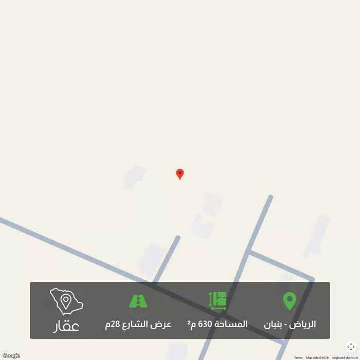 630 م² أرض في بنبان، الرياض معروضة بسعر ١٬١٣٤٬٠٠٠ ريال، أعلى بنسبة 41% من متوسط سعر الحي البالغ ٨٠٤٬٥٦٢٫٥ ريال. بناءً على 944 عقار مشابه.