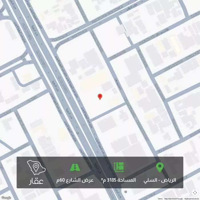 3185 م² أرض في السلي، الرياض معروضة بسعر ٨٬٥٩٩٬٥٠٠ ريال، أعلى بنسبة 7% من متوسط سعر الحي البالغ ٨٬٠٠٩٬٧٥٠ ريال. بناءً على 24 عقار مشابه.