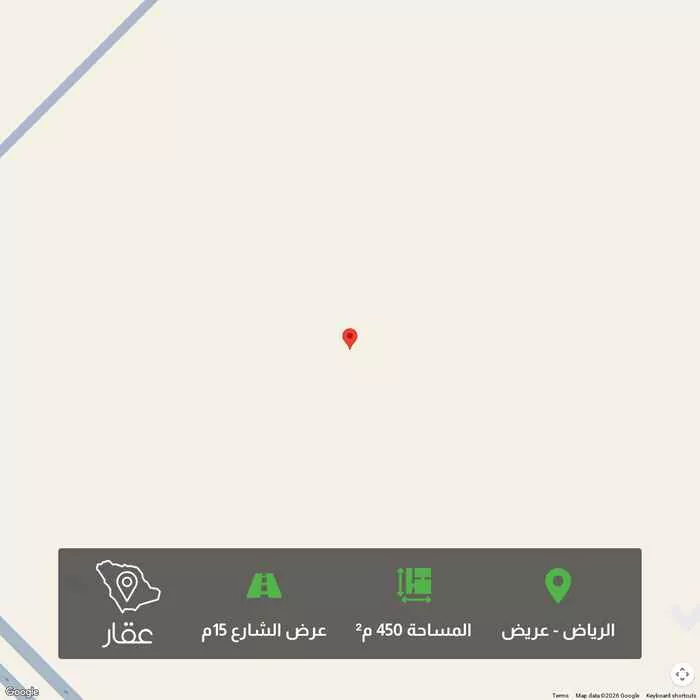 450 م² أرض في عريض، الرياض معروضة بسعر ٧٥٠٬١٥٠ ريال، أعلى بنسبة 88% من متوسط سعر الحي البالغ ٣٩٩٬٦٠٠ ريال. بناءً على 653 عقار مشابه.
