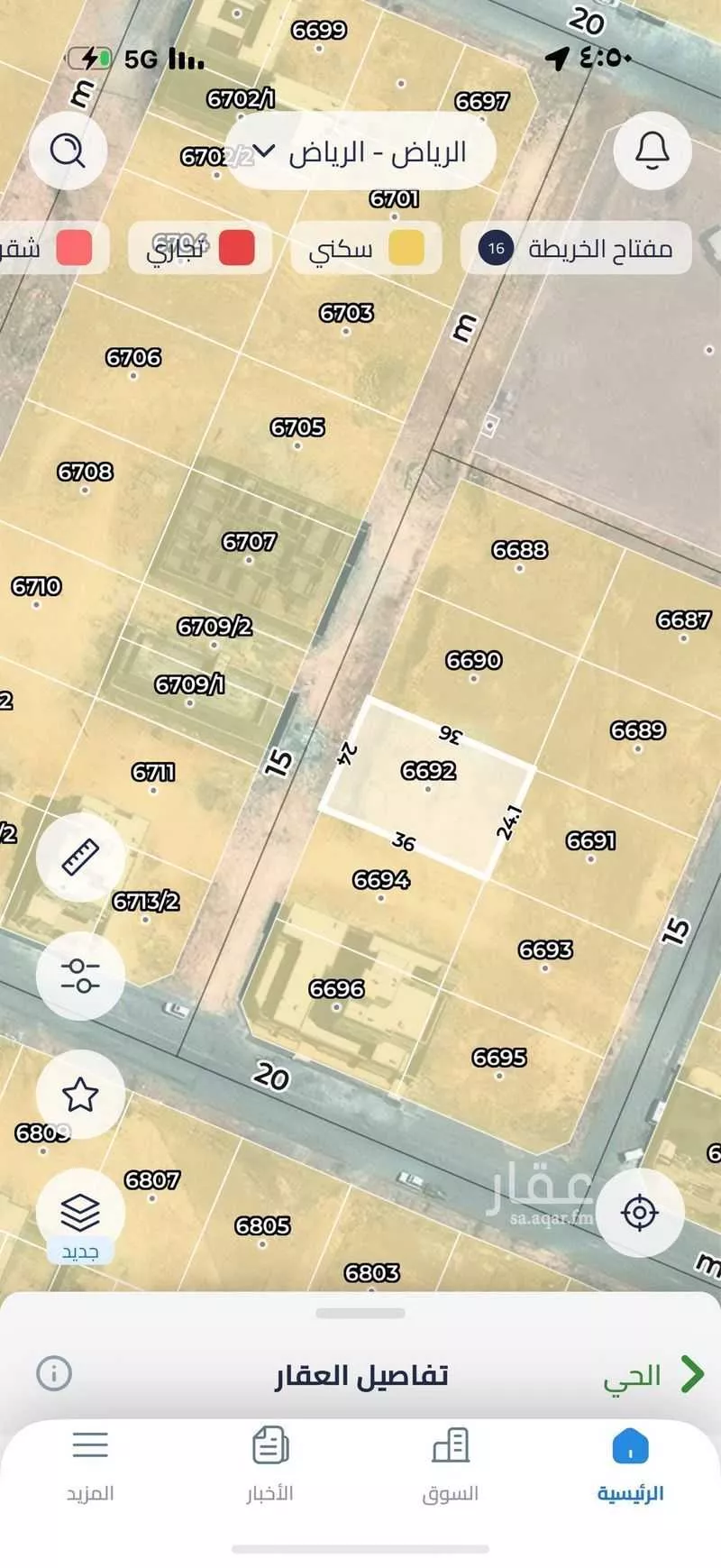 عرض على Aqarأرض للبيع نمار ٣٠٢٠/و ٤٣٢ متر الاطوال ١٢ في ٣٦ شارع ١٥ غربي قريب من أجياد كل اللي حولها فلل قايمه السعر ٥٦٠ الف صافي